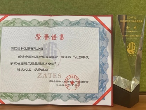 怡和衛(wèi)浴應(yīng)邀參與大會,在現(xiàn)場展示怡和智慧美學(xué)產(chǎn)品,并榮獲2020年省旅游工程協(xié)會品質(zhì)服務(wù)金獎。