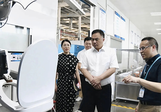 近日,臺州市椒江區(qū)區(qū)委書記王宗明、副區(qū)長倪成暉一行蒞臨怡和衛(wèi)浴考察交流,對智能馬桶產業(yè)發(fā)展情況、怡和發(fā)展歷程到經營理念進行全面詳細了解。