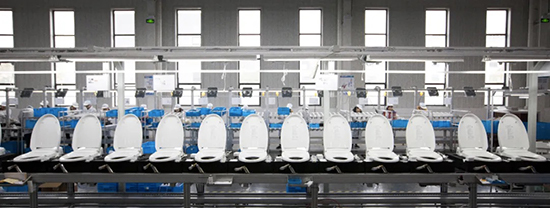區(qū)委書記王宗明一行實地參觀了怡和智能馬桶從零件到整機組裝的全自動流水工藝,在生產車間看到智能馬桶由一個個細小的零件在自動機械臂和人工輔助的校對下組裝成體。